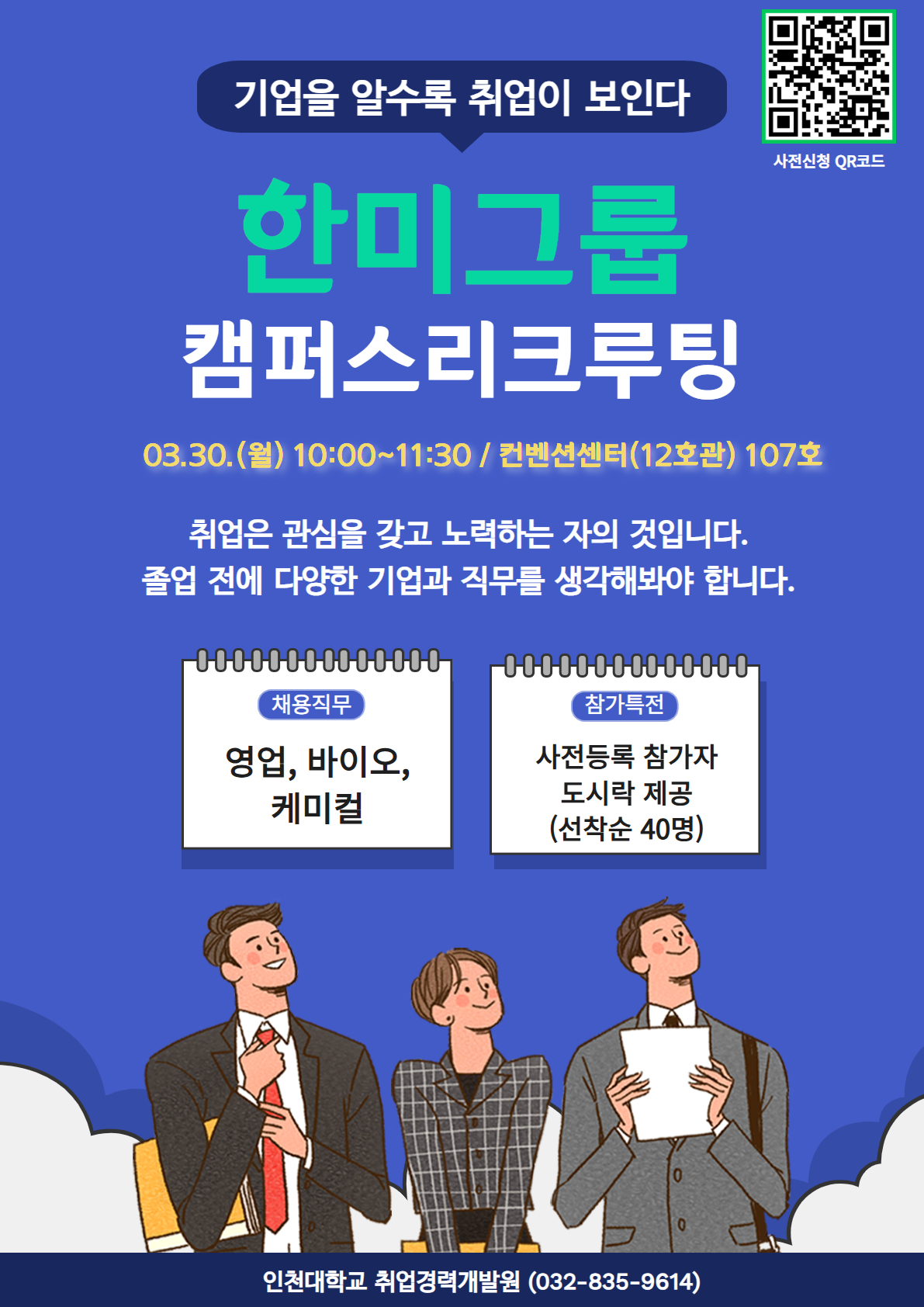 fnctId=bbs,fnctNo=733 한미그룹(3.30.월) 채용설명회 글번호 420551 작성일 2026-03-05 수정일 2026-03-05 작성자 화학과 최민경 (0328358230) 조회수 98 첨부파일 사본 -한미그룹 채용설명회.jpg 다음글 이전글 ㈜ 바이오솔루션 인재 채용 최민경 2026-02-26 10:53:34.0 목록